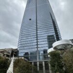 会場となった麻布台ヒルズの中心といえるメインタワー「森JPタワー」を下から撮影(当日は若干曇り)。高さは330メートル、日本一高い超高層ビルだそうです。